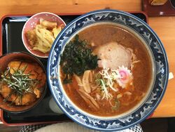 ランチ時に訪問し、ごまラーメンとランチのミニソースカツ丼を注文。ごまラーメンは酸っぱ辛いスープであと引く感じです。ミニソースカツ丼は小さめながらも150円の値段はありがたいなーと思いました。 (訪問:2016/03/24)