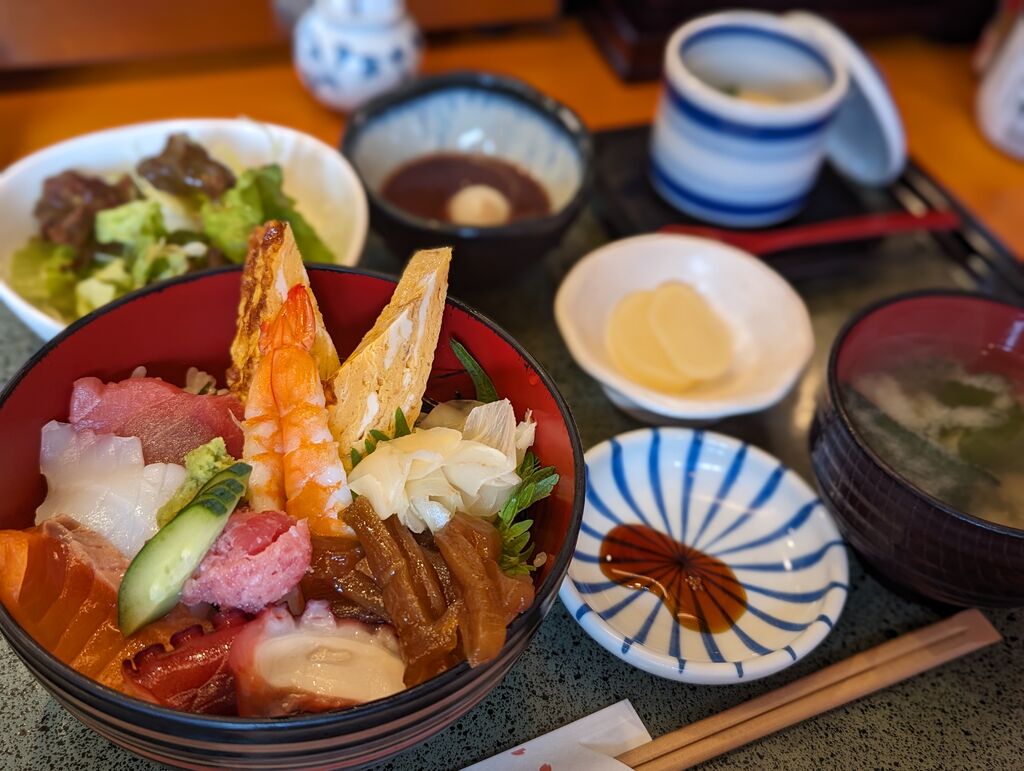 ランチ時にお邪魔しました。早い時間でしたので、予約なしでも待たずにカウンターに通されました。お昼食メニューから【海鮮丼】を注文してみました。厚みのある新鮮なネタで大変美味しかったです。サラダに茶碗蒸し、デザートまで付いているので、これで1210円はお得ですね。店員さんの対応もよく、気持ちよく食事が出来ました。ごちそうさまでした。 (訪問:2024/03/05)