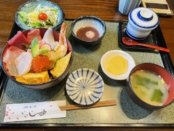 帰省した息子が和食が食べたいと言うので、連れて行ったことのないいいじまさんに行きました。11時開店のお店が少ないので、いつも助かります。私はいつもの海鮮丼、息子はかき揚げ丼をオーダーし、ボリュームたっぷりの丼を、美味しいとペロリ完食していました。お店の方の気遣いも気持ち良くて、大満足ランチでした。 (訪問:2024/10/12)