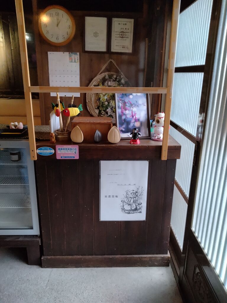 今日は朝から寒く、囲炉裏のある古民家そば処美濃里庵さんにぬくもりを求めて伺いました。店内に響く声で出迎えていただき、囲炉裏の炭にホッコリ。ストーブも炊かれていました。早速 白黒セットとかき揚げセットを注文。 かき揚げセットは白そばをお願いしました。白黒セットも黒そばが先に届き、食べ終える頃に絶妙なタイミングで白そばが提供されます。コシが強く、喉越しがよく香りも楽しめ最高のお蕎麦です。かき揚げも玉ねぎの甘さが強くサクサクでした。美味しかったですかごちそうさまでした。 (訪問:2023/11/26)