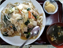 連日暑いですが、ランチはガッツリと肉ですね。この店は唐揚げが旨いですが、今日は夏野菜もたっぷりと入った酢豚。豚肉がたっぷり、ザク切りの夏野菜もたっぷり、黒酢の味付けが健康的。小ライスと組み合わせて大満足。大田原出身の大島美幸さんも常連で、唐揚げを食べていたそうです^_^ (訪問:2024/07/09)