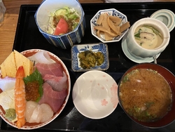 | ◇海鮮丼定食【ランチ限定】 サラダ、お新香、茶わん蒸し、味噌汁、小鉢付き |
