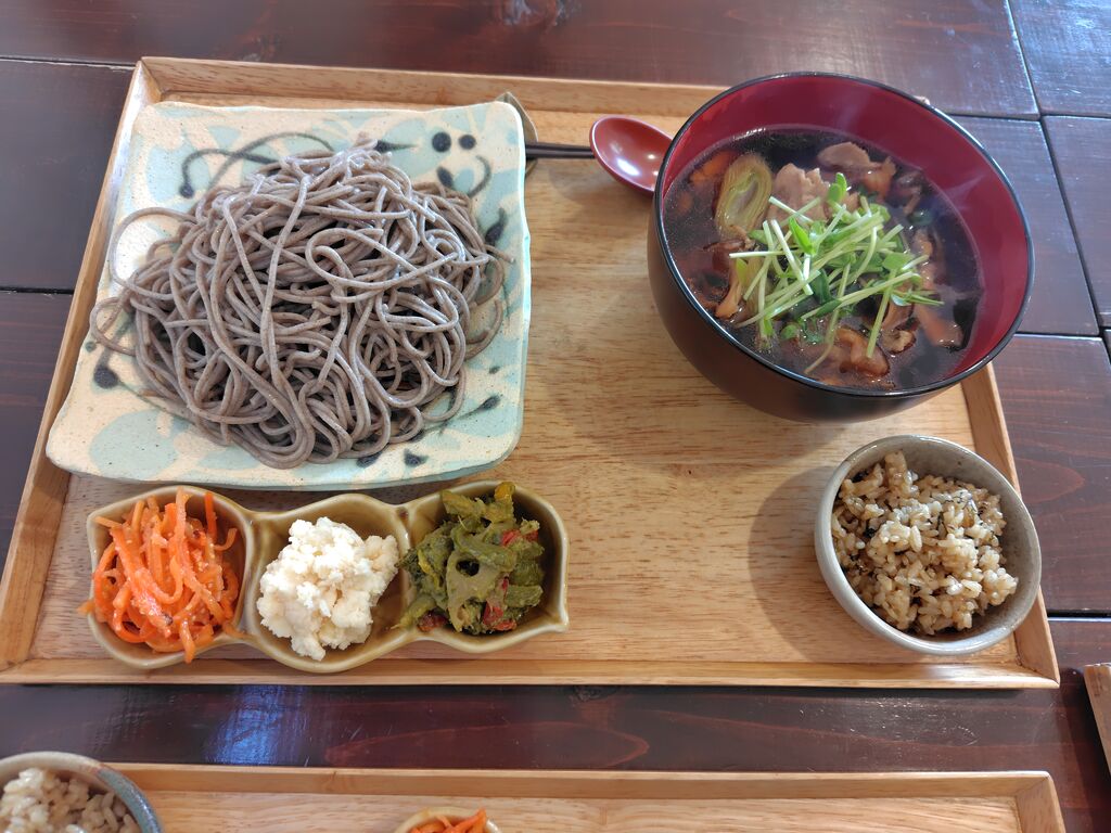 インスタなどで写真を見てずっと行きたかったお店にようやく行けました。3種の前菜(グリーンカレー、さつまいもサラダ、キャロットラペ)もご飯もお蕎麦も舞茸天ぷらも全部味付けのセンスが良くとても美味しかったです。そしてデザートのかぼちゃプリンが今まで食べたプリンで最高得点でました!たっぷりの美味しい珈琲と一緒にいただき幸せな気分になりました。また行きます! (訪問:2025/11/17)