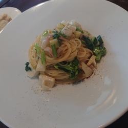 予約時に、食べられない食材などのお好みをお伝えすると、出来る範囲で対応してくださるサービスは健在のようです。当日予約でも、対応していただけ、感謝いたします。パスタが3種類から選べ、旬の食材を使っているから、メニューが変わるのが早い。それに、60グラムを選べるのも魅力的。幸せなランチを、ごちそうさまでした! (訪問:2025/05/26)