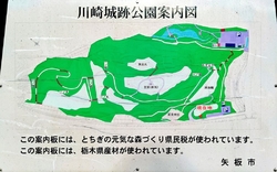約800年前、塩谷地方を領有していた塩谷氏の5代朝義が宇都宮業綱の次男朝業を後継者に迎え築城した川崎城の跡地を整備した公園です。園内は空掘や土塁、本丸や二の丸など昔をしのばせる史跡が随所に残っています。