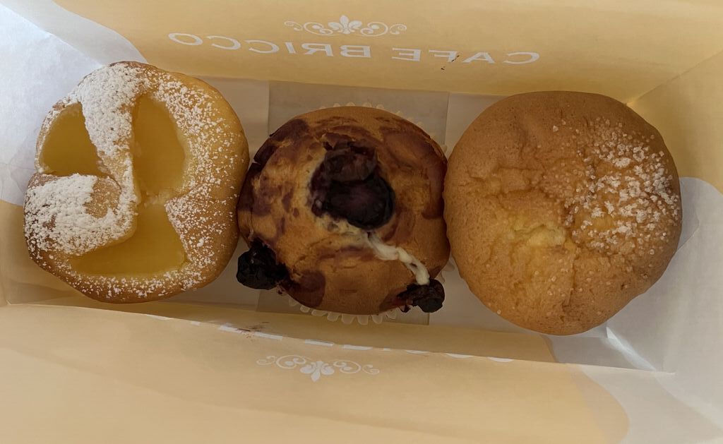カインズの入り口はいってすぐのところにあります。イートインスペースもあったので、マフィンは持ち帰りにして、100円のミニソフトクリームを買って座って食べました。甘くて濃厚な美味しいソフトクリーム♪マフィンは、好きな組み合わせ3個で30円引きだったので、プレーン、アップルカスタード、低糖質のブルーベリーの3つ購入。プレーンは王道の味で間違いない美味しさ♪アップルカスタードは上にアップルコンポートが乗り、中にはカスタード。りんごが程よく甘くて美味しい!ブルーベリーは低糖質タイプなので、生地がプレーンと比べると少しパサつく感じがありました。純粋に甘いマフィンが食べたい方には少し物足りないかも?でも美味しかったです!試食にと、ラスクも頂きました!美味しかったので、次回はラスクも買いたいと思います♪ (訪問:2024/03/27)