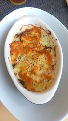 わくわく♡の初来店。期間限定のポイント交換をさせていただき、ランチに行ってきました。ありがとうございます。パスタやピザなど魅力的なメニューの中から【グラタンランチ¥1,350】をオーダー『前菜4種・グラタン・パン・選べるドリンク・デザート』と充実したラインナップです。ミニミニかき氷は、サービスでいただきました。グラタンはチーズたっぷりで、凄く美味しかったです♪手作りパンや雑貨も販売されています。前菜がひとつひとつ手作りで温かみがあり、ほっとした味わいで和みました(✿^‿^)お店の方の親切な心遣い言葉遣いにも癒されました。 (訪問:2025/08/31)