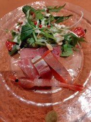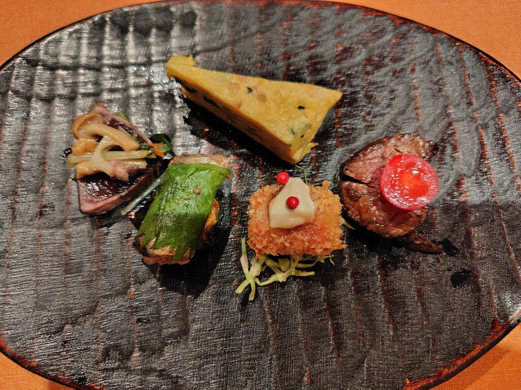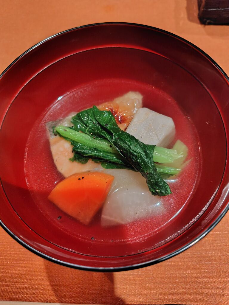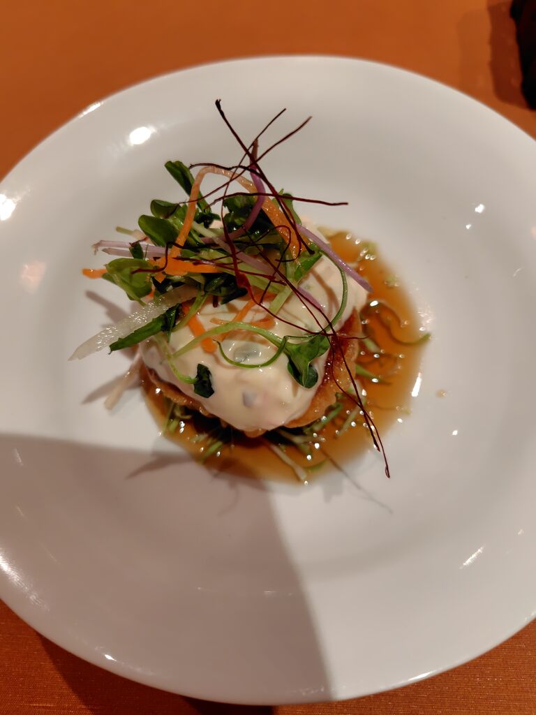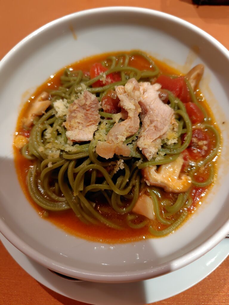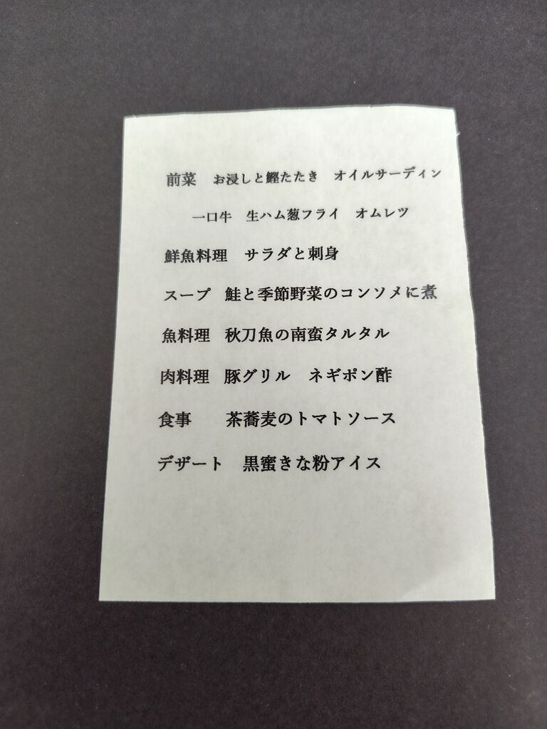 予約をして友人とディナーしました。12月のディナーの予約はコースのみということです。洋食と和食が混ざった料理で、盛り付けも綺麗です。こちらでお刺身が出てくることに驚きました。食事の茶蕎麦のトマトソースが美味しかったです。イタリアンだけど和食の風味もあって、もっとたくさん食べたいと思いました。友人も気に入っていました。それぞれの提供されるタイミングも素晴らしく、適温で食べられます。 (訪問:2025/12/02)