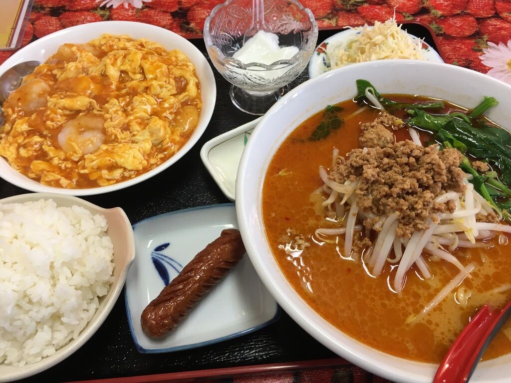 ランチを食べに行きました。ランチメニューはごはん、メイン、スープ、サラダ、ウインナーなどの定食セット、麺類と丼もののセットがあり、ボリュームがあります。定食のメインはエビチリ、酢豚、ニラレバなどから選べ、私はエビと卵のチリソースにしました。100円追加すると、スープを麺類に変えることができます。追加して担々麺をお願いしました。ご飯もお代わり自由です。ソフトドリンクのサービスもあり、お腹が空いた時はガッツリいけるお店です。 (訪問:2017/11/08)