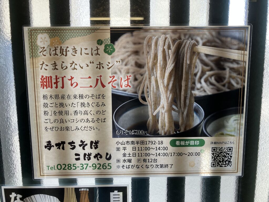 行ってきました。細切りの少し黒みのかかった蕎麦でした。正直言って、小山市の外れのでこんなに上品な蕎麦は似合わないと思うほどに美味しかったです。そばを口に入れた瞬間にそば独特の香りと甘味が伝わってきました。火曜日なので、大盛りが無料だそうです。余りのおいしさに、大盛りそばおかわりしてしまいました。 (訪問:2021/04/20)