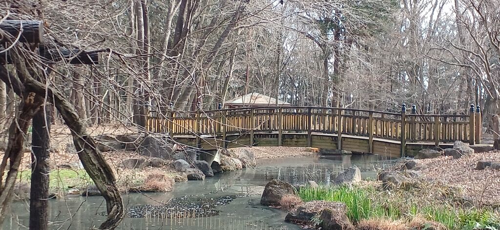 今日は平日ですが、天気も良く、散歩日和と思い、しばらくぶりに来ました。この建物のまわりに、ロウバイが4本あり、甘いいい香りがして、楽しんで来ました。 (訪問:2025/01/27)
