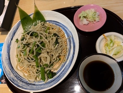道の駅の買い物の後に寄りました。私はひたしそば、息子はもりそばとフキノトウの天ぷらを注文しました。ひたしそばはかき揚げがすごく大きくて、崩しながら食べました。アツアツ、カリカリで美味しかったです。とろろをつゆに入れると、さらにのどごしが良くなります。 (訪問:2025/03/31)