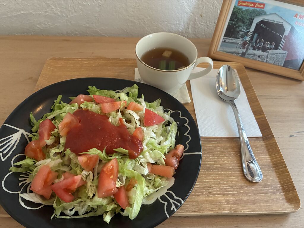 お友達とのランチ会で11時半ごろお邪魔しました。こちらがお初のお友達は、素敵なお店~!とテンション上がってました。靴を脱いでスリッパに履き替え店内へ。ランチは、カレー/タコライス/ナポリタンから『ナポリタンセット1450円』をチョイス。サラダとドリンクがつくセット。食後に『ティラミス480円』をオーダー。待っている間、話しに花が咲き楽しいひととき。ケチャップ味というよりはトマトの味がしっかり感じられるさっぱりと旨味が増したナポリタンであっという間のペロリ♪サラダもついているのはとっても嬉しい!お友達が食べていたタコライスにはスープがついていて、こちらも魅力的。食後のティラミスはさっぱりめの食べやすいティラミスで、食後でもさっぱり美味しくペロリ☆お昼過ぎにはほぼ満席になる人気店。店主さんが一人で全てを担っているので、少々お時間はかかりますが、まったりした時間が流れており、癒しの時間を楽しめます^^ (訪問:2026/02/22)