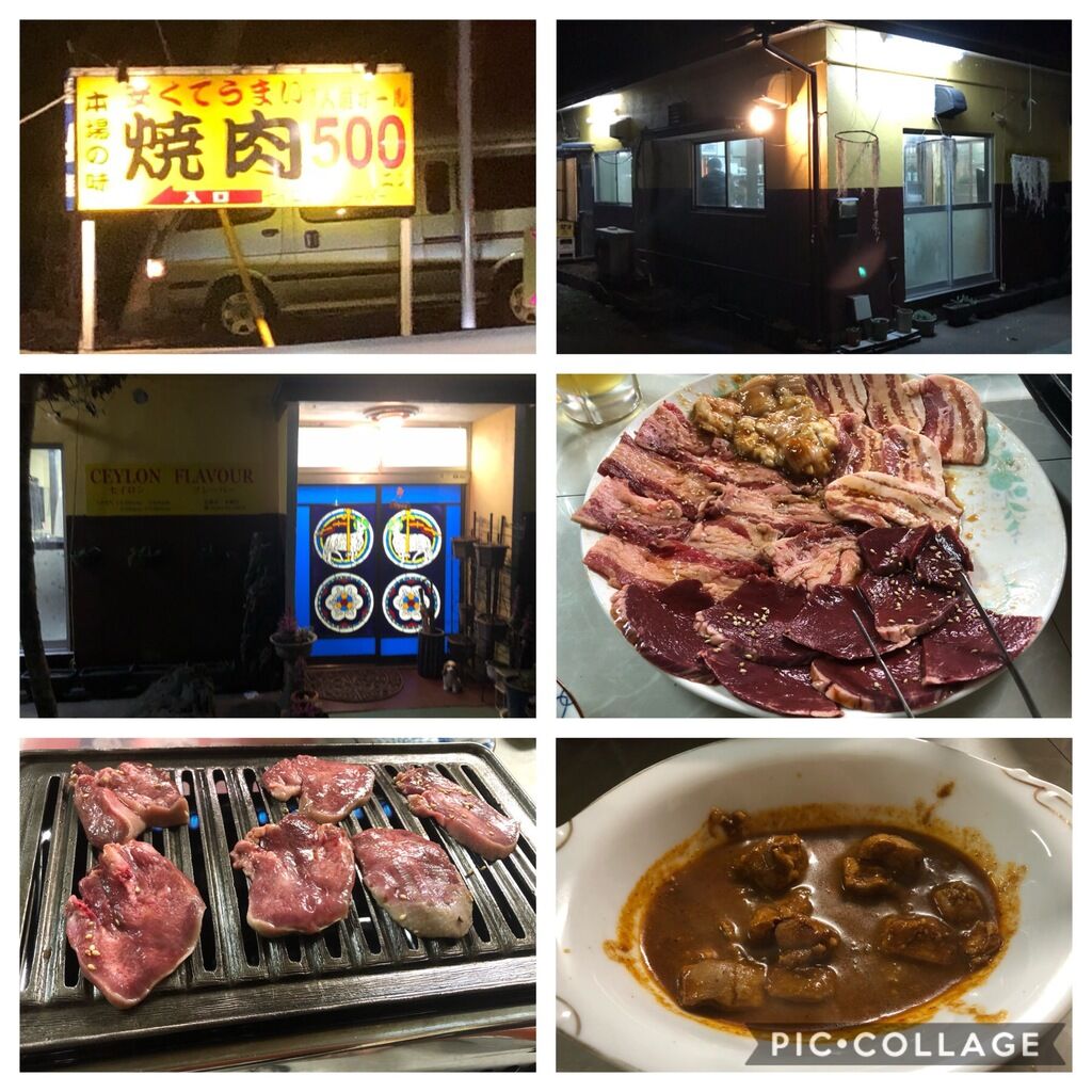 同僚が安くて美味しい焼肉屋があると言うので早速栃ナビさんで検索するも登録無し!非常に興味深いお店ながらMY GODさんはまず行かないだろうとの予想から地元の有志を募り男4人で突入!場所は国道408号(鬼怒テクノ通り)と県道46号の立体交差点付近の雑木林の中で国道408の側道を北から南下しないと入れない超目立たない場所。夜7時に現地付近に到着するとお店入口看板発見。すると前を走っていたマイクロバスと県外ナンバーのワゴン車がお店方向に左折(写真左上)。団体で県外からわざわざ食べに来るの!?と驚きと共に予約しなかった後悔が・・・!急いで後を追い壁の塀の切れ目を敷地内に入ると車が回れるロータリーになっていてその回りに白い1戸建が7,8棟とカラフルで明かりの点いた建物が1棟。そう!ここは元時間制の貸しお部屋でお店は多分その管理棟だったのでしょう!目立たない場所にあるはずです。さて、スリッパを履き全て空いていた3卓中の1卓に着席。奥に座敷が2部屋あり先客は3,4人の男性客が3組と子供と大人計10人程度の団体が1組み。まずはおまかせ5品盛り(写真中右と下左で2000円)を頼みましたがコスパ良し普通に美味しいです。再度のカルビとホルモンその他未開拓の7,8品を追加注文(全て500円)飲み物はセルフでジュースは2Lペットが250円と激安。団体客のご婦人達も冷蔵庫から勝手にビールやジュースを持って行き後で飲んだ分だけ支払うシステムのよう。我々は生ビール(450円)麦焼酎のボトル(1500円)2Lペット水(100円)2Lペットコーラ、食べ物はナン、タンドリーチキン、カレー、スリランカ焼飯、等々注文。ご飯はナムルやサラダ、キムチ、たくあん、味噌汁が食べ放題で200円とこれまた激安!ナンは美味しく2回追加注文しました。店主ご夫婦はスリランカの方なのでカレーは独特の味です。おなか一杯で店を後にしました。後から入ってきた4名のお客さんも含め我々以外は全て常連さんの様でした。 (訪問:2019/03/23)