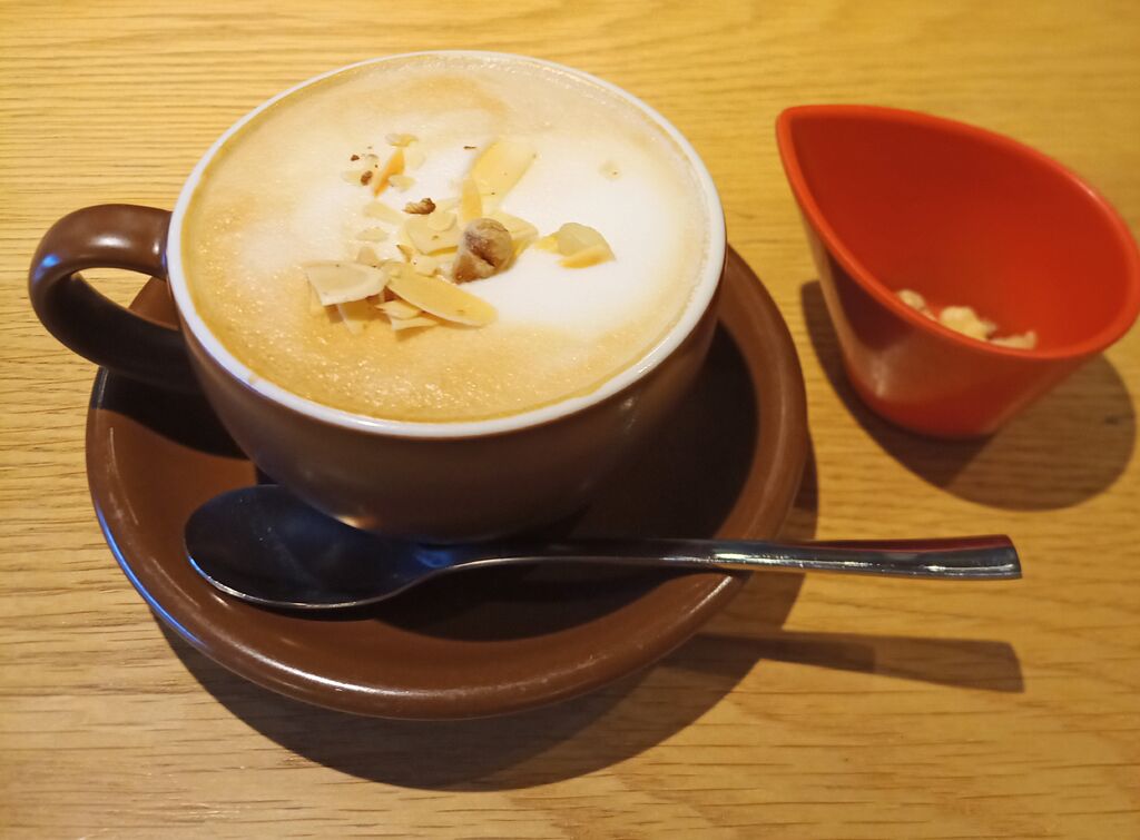 NEW「チェスナッツラテ」を注文しました。税込693円です。表面はふわふわのフォームドミルクに覆われています。コクのあるエスプレッソが美味しいです。ナッツを入れるとカリッとした食感も楽しめます。何度か飲んでいますが、リピートしたくなる美味しさです。 (訪問:2026/02/07)