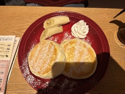祝日に朝は楽したくてモーニング目的できました。トーストのセットもありましたが、パンケーキのモーニングを選択。パンケーキのセットには単品のものバナナが添えてあるもの、フルーツセットがありましたが私はフルーツセットにしました。ちなみに娘も同伴でしたがバナナ添えセットでした。パンケーキは待つこと20分、しゃべっているとあっというまに運ばれてきます。パンケーキは朝でも安定のふわふわです。一緒に頼んだブレンドコーヒーによく合いおいしかったです。 (訪問:2026/01/12)