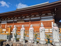 いつ伺っても、整備が行き届いた、綺麗なお寺。お彼岸なので、たくさんの方がお墓参りに訪れていました(^^♪ いいお天気だし、六地蔵も、ウキウキ気分みたいo(*////▽////*)q (訪問:2025/03/20)