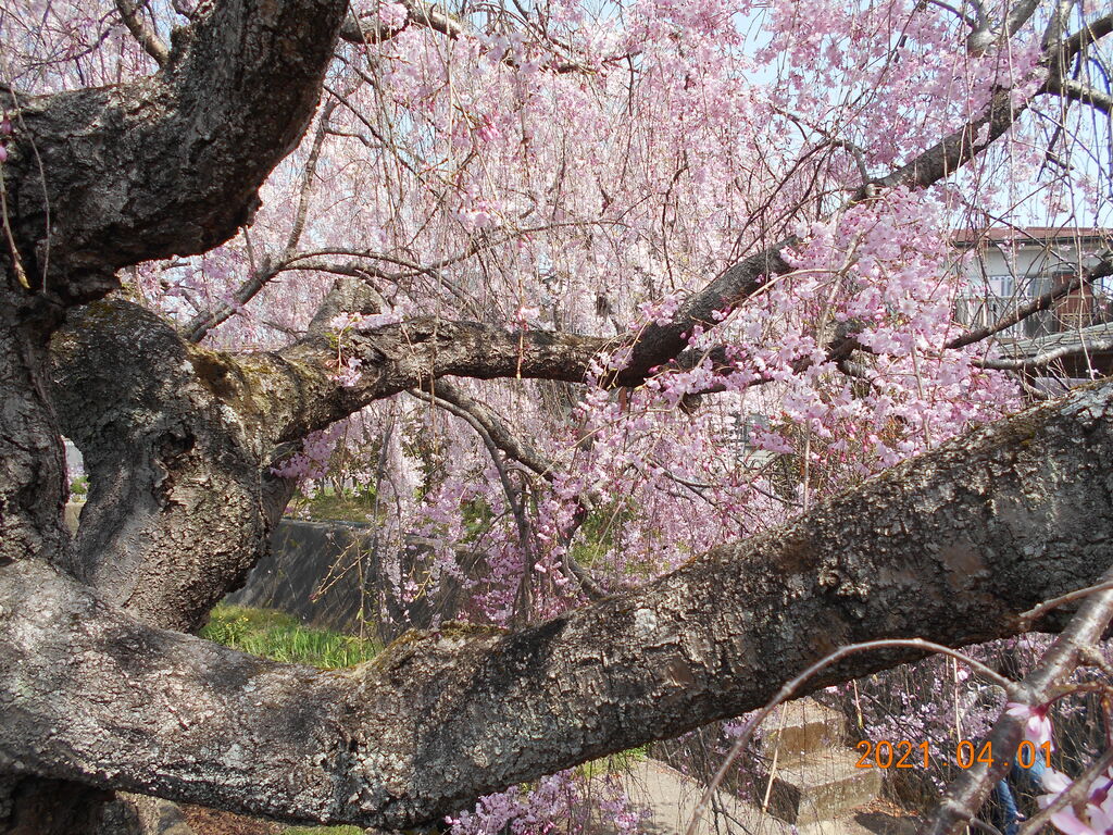 市内で一泊した朝、散歩をしていると総合運動場にしだれ桜をめでるウォーキングスポットがあることを知り向かいました。すると臨時の駐車場が設けられていて、たくさんの人が車から降りて出てくるのを見て、これは期待できると私たちも降りました。幹の形が素晴らしいしだれ桜が水路に沿って連なっています。ほぼ満開で感動ものでした。道は平坦で歩行者専用、ウォーキングには最高ですね。 (訪問:2021/04/01)