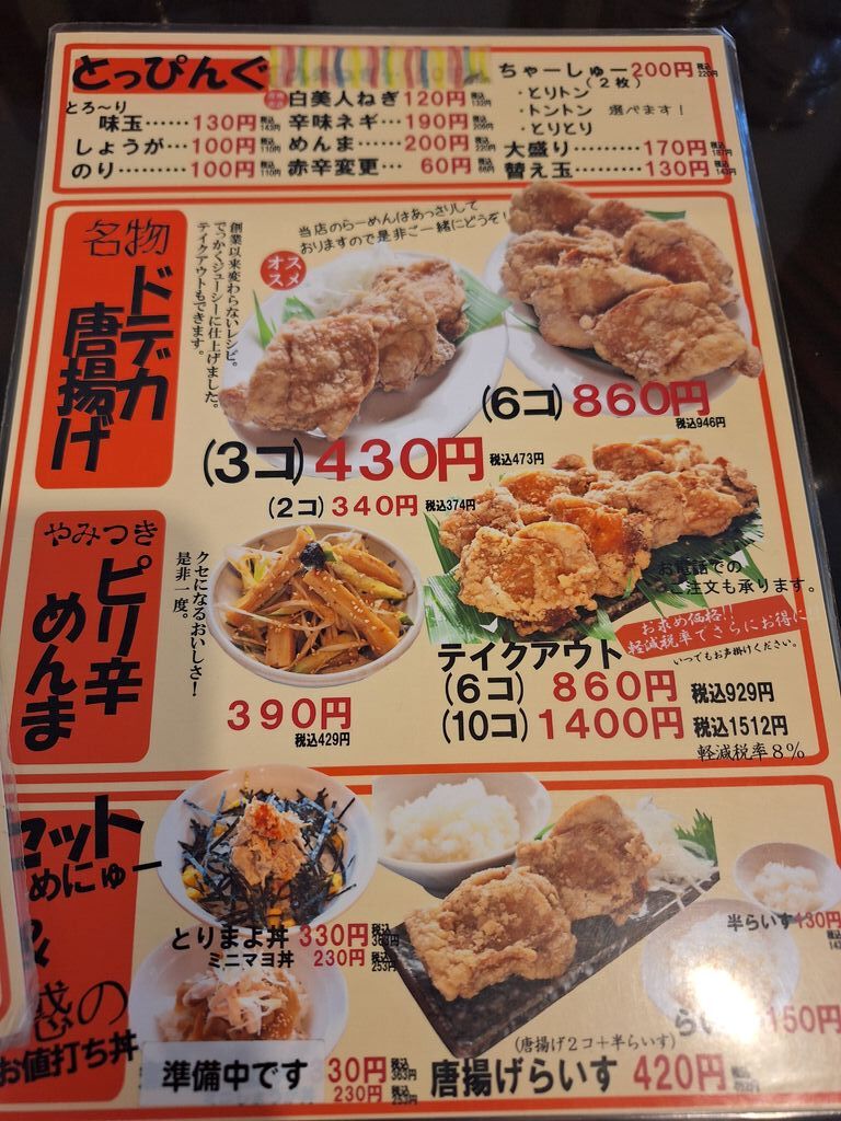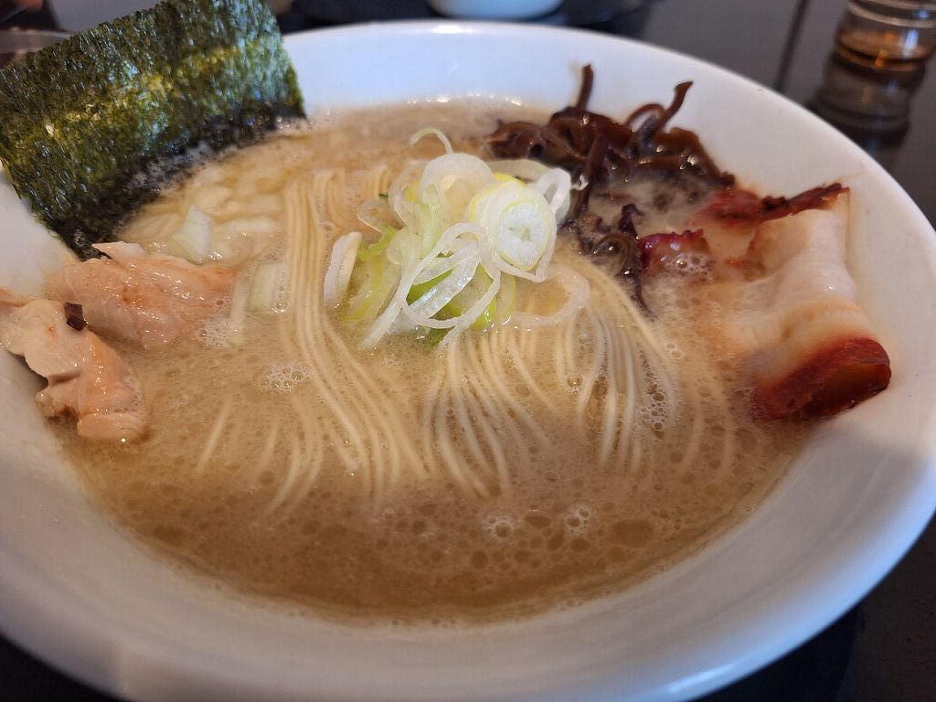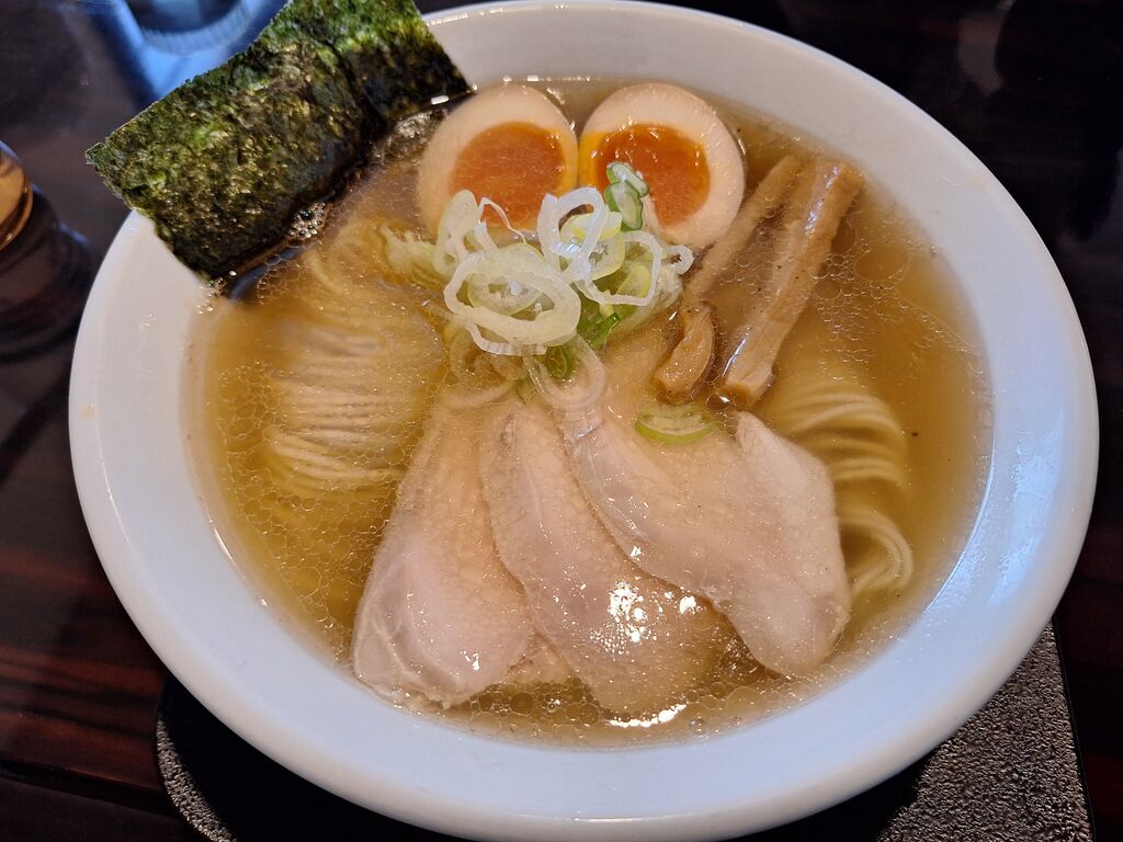 前から行きたかったこちらのお店に初来店。開店直後に到着しましたがすでに満席でした。入店すると記名表に名前を書き、呼び出しベルを待ち、待つシステムでした。当店人気No.1の味玉しょうがそば+唐揚げセットを注文。 スープは、スッキリとしていて主張しすぎない煮干しベースに、鶏がいい仕事をしてくれてます。 麺は細目のストレート麺で、麺量も結構ありました。チャーシューが鶏と豚と2種類入っていて、しっとりとしていて旨味もあり、美味しかったです。たっぷりの生姜玉を崩しながら、いただきました。全体的にバランスがよく、丁寧に作られている感が伝わり、大満足でした。セットの唐揚げの下に敷かれていたオニオンスライスも、さっぱりしていてよかったです。 (訪問:2025/06/01)