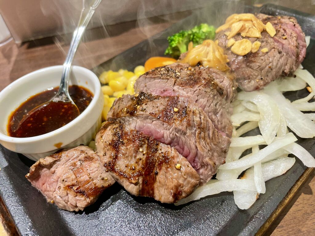 ちょっと久しぶりに早めの夕食におじゃましましたぁ(^∇^)ノ♪入口にどど〜んとある看板の「アンガスリブレットステーキ」?も気になりましたがやっぱりお気に入りの「赤身のロース」を300g〜☆赤身といっても程よく脂身もありGood〜(^^)bいろいろな調味料で味変しながら最後まで美味しくいただきましたぁ(^人^)♪柚子のソース&わさびといきなりオリジナルの甘口のタレ&ニンニクがお気に入りです♪相方はお馴染みの「ワイルドステーキ」を300gにライス&サラダセットを付けて、さらにアプリクーポンで¥150で生ビールをいただきましたぁ(≧▽≦)♪ワイルドステーキは脂身がしっかりで運ばれて来た時のジュウジュウはすごかったぁ〜w(°o°)wモリモリ食べて元気出ましたぁ(≧▽≦)!また元気チャージにおじゃまします♪ (訪問:2025/10/04)