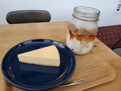 コインランドリーに併設されているカフェ♬コインランドリー内に珈琲が飲める所があるなんて知らなく連れて来てもらったぁ~(笑)新鮮~(ૢ˃ꌂ˂⁎)曇り空で肌寒かったので《ココア》をオーダー♪香ばしココアの香りにホッとし、奥深く優しい甘さに癒され心温まる~(笑)一緒に頼んだ《りんごのチーズケーキ》濃厚なチーズケーキの風味に、りんごの酸味と甘みがバッチリで、後味がさっぱりしていました。ゴロゴロと隠れているりんごのシャキシャキ食感にも感動~(笑)コインランドリー内に居る事を忘れちゃう位、居心地良くマッタリしちゃいました(*ˊ˘ˋ*)♪ (訪問:2025/10/14)