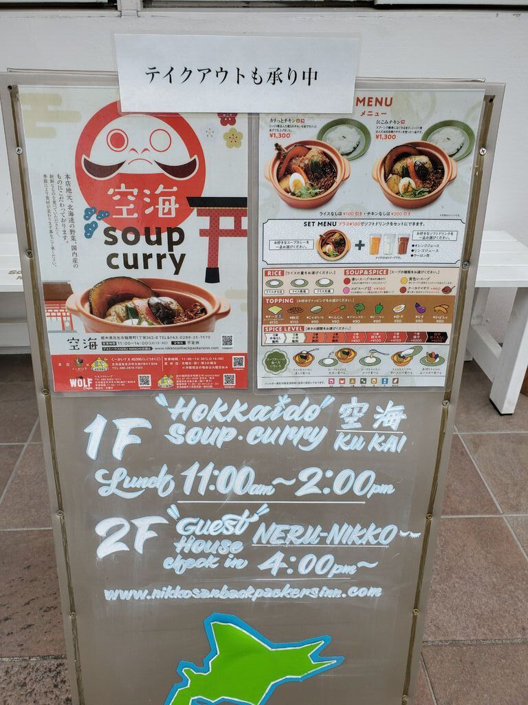 素材の味をダイレクトに感じられる新鮮野菜と、やわらかく煮込まれたジューシーチキンをぜひご堪能ください!カレー好きのオーナーが全国を食べ歩いて開発した特製スープカレーは絶品です。日光観光の際は2Fゲストハウスのご利用も大歓迎♪