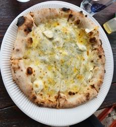 今回も妻のリクエストでバスで訪問しました。3回連続の訪問になります。注文は「餃子ピザ 1,300円」「クワトロフォルマッジ 1,600円」「イタリアン サラミ 1,300円」「流水塩レモンサワー 500円×3」「青リンゴビール 580円」「日本酒 酔夏(スイカ)ソーダ割 500円×2」「鳳凰美田 ピーチ 500円×2」「梅クラフトコーラ 500円」今回もお気に入りは餃子ピザでした。お酒は果実系を沢山いただきました。新商品の苺氷、味見させていただきましたがそのまま削っているのでフルーツ感と食感が凄いです。 (訪問:2024/07/06)