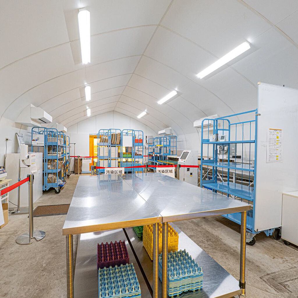 “GPセンター”を 自社で完備 箱庭たまごは最大3000羽程度の小さな養鶏場ですが、鶏卵の選別と包装を行う“GPセンター”を自社で完備しています✨