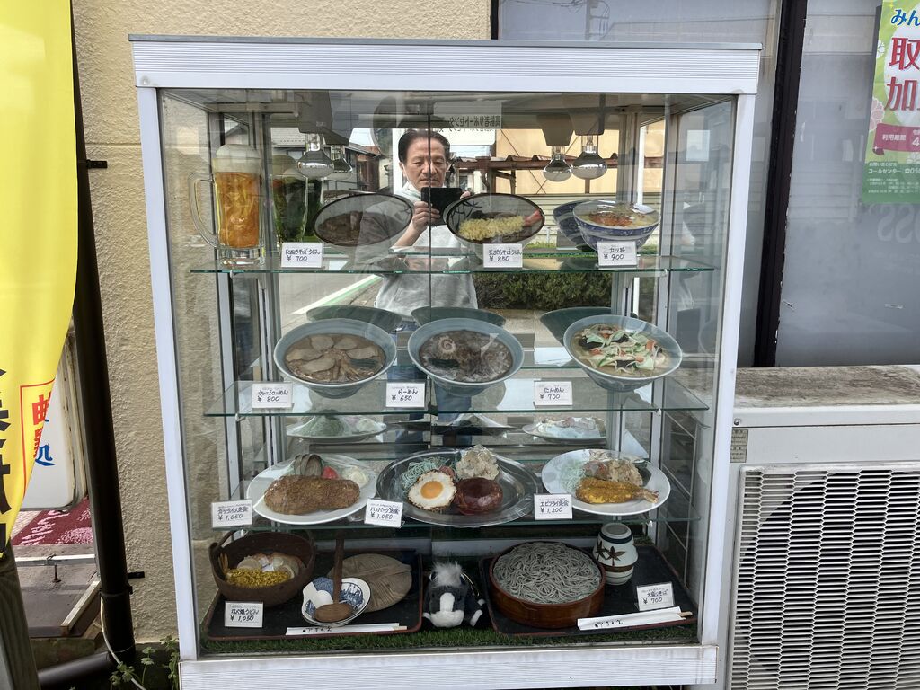 ツーリング仲間とお邪魔しました。駐車場はお店の向かい側の路地を入った所にあります。お店の前には食品サンプルのあるショーケース。昔ながらのどこか懐かしい佇まいです。大人数でお邪魔してしまったのですが、快くお座敷に迎えて下さいました。定食メニューからイカフライ定食を注文。ほどなく揚げたてのイカフライが。プリプリの大きなイカフライ。小鉢とお漬物、みそ汁と蓋つきどんぶりのご飯が。とても美味しかったです。仲間のみんなも、カツカレーやカツライスを美味しそうに食べていました。次回は違うメニューを食べてみたいです。ごちそうさまでした^^ (訪問:2025/10/13)