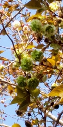 ソノサトリョクリュウが咲いている頃だろうと思い訪れました。開花が進み殆どが淡いベージュ色へとシフトしている中で手前の枝に辛うじて黄緑色の花々がありました。黄緑色からベージュ色へとシフトする前の2色のストライプになっていてキャベツのような色合いです。昨年はこのような状態を見られなかったので新鮮に感じました。 (訪問:2023/04/09)