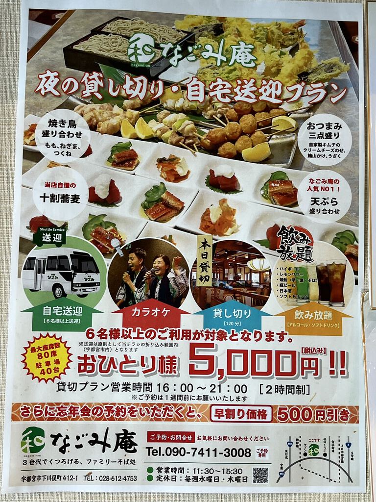 奥日光中禅寺温泉の宿泊施設【旅籠なごみ】の直営店です。料理長監修の極上出汁とうどん、こだわりの十割蕎麦を堪能。十割蕎麦本来の旨みを自慢のつけだれでどうぞ!全品ドリンクバー付き!