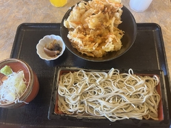 初めての来店です。以前通りかかって寄ってみたら閉店直後だったため行けずにいてずっと気になってたお店でした。入って案内されるとドリンクバーは無料とのこと。結構メニューの種類が沢山あって悩みましたが合い盛りをオーダー。十割蕎麦とコシのあるでも柔らかい博多うどんがそれぞれのつけ汁が用意され交互に味わいました。合間に天ぷらを食べ結構お腹いっぱいに。デザートメニューを見てたら期間限定パンプキンプリンの写真が。かぼちゃ好きな自分はたまらなく食べたくなり、ましてや期間限定とあればいつこちらに来れるかと思うと頼まずにはいられなくなりタブレットのボタンを押して頼んでしまった(笑)数分後に到着。容姿からみて手作りのようです。一口頬張るとめちゃくちゃ美味しい。思わず後輩にも一口お裾分けした位。今まで食べたパンプキンプリンの中で1、2位を争うくらいの美味しさでした。他のデザートもきっとどれも美味しいのでしょうね。次回機会があれば別のデザートも頼んでしまうかもしれません。もちろんメインも美味しかったです。ご馳走様でした。 (訪問:2025/10/21)