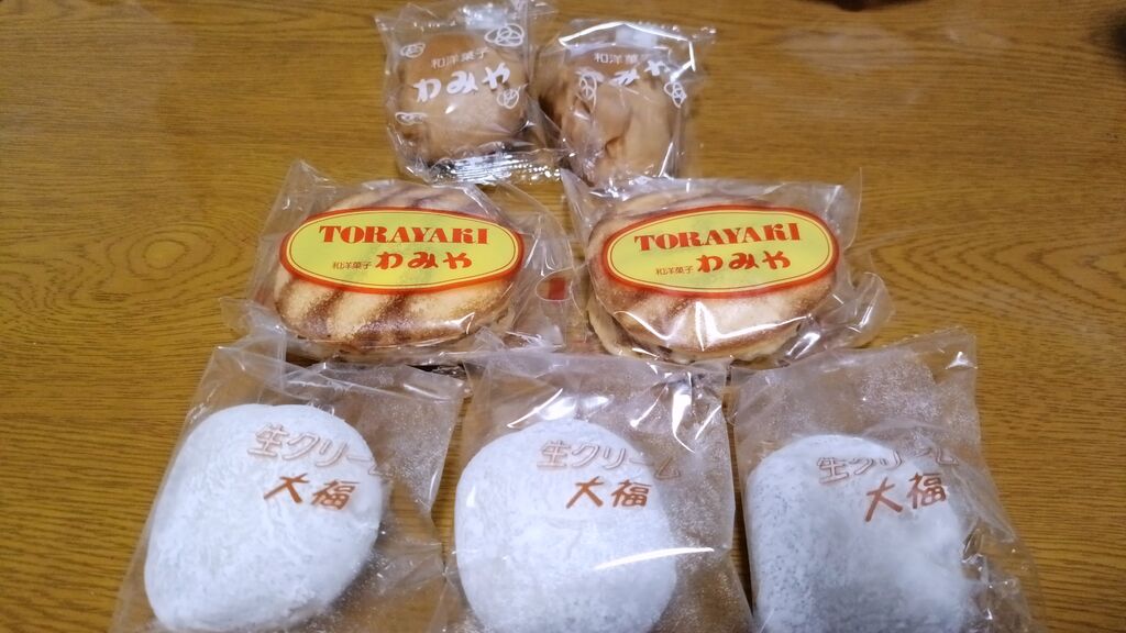 生クリーム大福ととらやきで有名な「わみや」さん。今日は知人にいただきました。私の推しは生クリーム大福。そしてとらふぐの学校です。生クリーム大福は餅米の皮の中に生クリームとこしあん。絶妙なバランスで一気に3つはいけます。とらふぐの料理は小麦粉の皮の中にナチュラルチーズ。他のお品物どれも美味しいです。市外にあるので、いつでも食べられませんが入手できた時は至福を感じることができます。 (訪問:2025/06/06)
