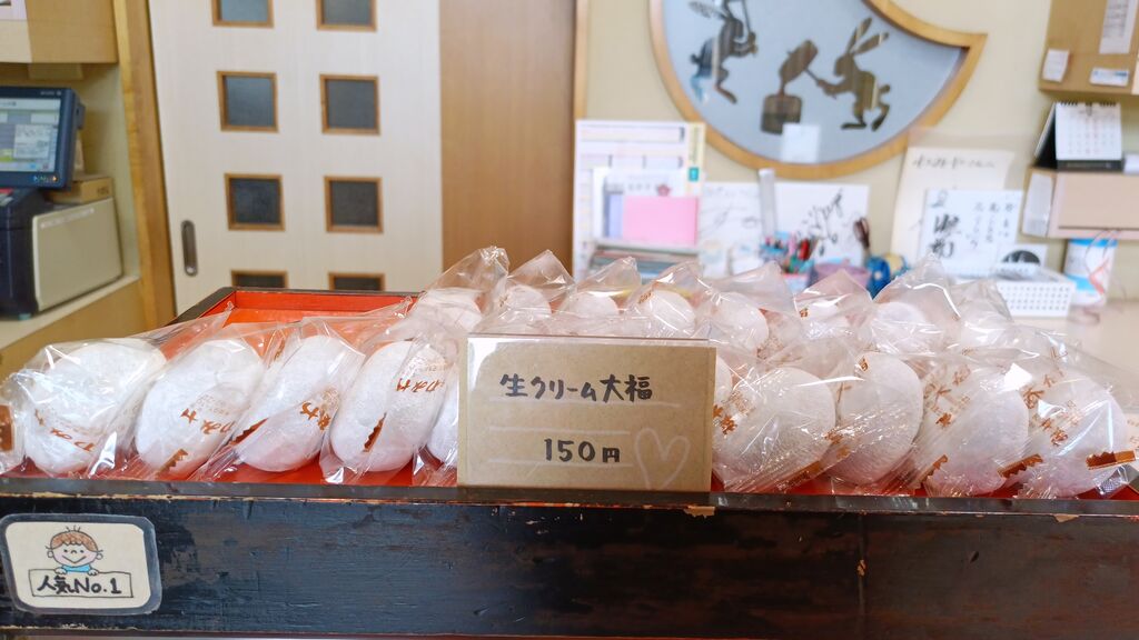 甘さ控えめでとても食べやすいクリーム入りの大福を食べました。美味しくて食べやすいので一気に3個食べられそうです。 (訪問:2025/11/25)