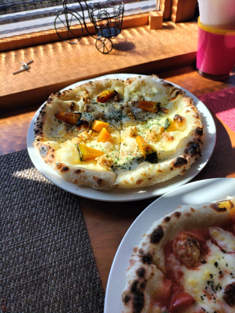 夏に伺った時にピザ窯が不具合だったため前回はパスタをいただきました(^O^) 今回は是非ピザを!と思い再訪問♪ 友達を別のものを注文してシェア❦ マルゲリータと季節のピザかぼちゃとピーナッツバターです! 初めて食べたピーナッツバターピザとても美味しかったです\(^o^)/ (訪問:2025/10/27)