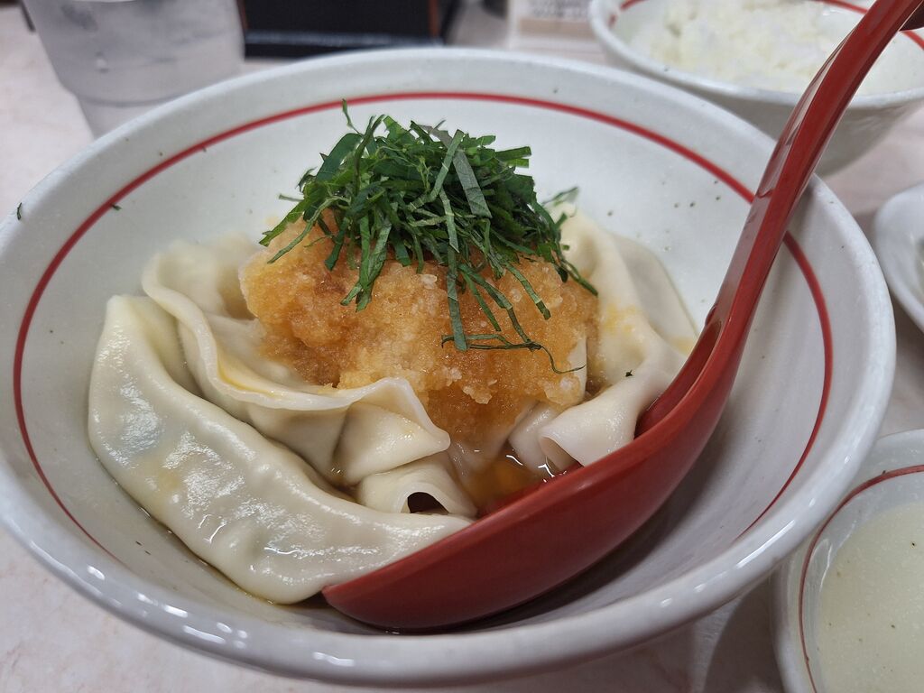 NEW11月から餃子食べたいモードが収まらず。晩御飯にこちらのさっぱり美味しいコンビを頂こうと19時半前に到着。いつもは行列が出来ていますが、寒かったからか行列なしの即着席。大好きな『おろししそ餃子500円』に家では上手く焼けない『焼餃子350円』に『半ライス250円』でオーダー。私の中の定番の組合せです。どんなに胃の調子が悪い日でもペロリと平らげてしまうおろししそ餃子。さっぱりしていてつるんとした喉越しと、美味しい餡が絶品のお気に入り☆焼目はカリッ、上部はモチリ、お酢との相性抜群のジューシーだけどさっぱり頂ける焼餃子。冷凍をゲットして家で焼くこともありますが、どうもこの味にならない悩みの種。お店で頂くのが一番です♪駅前にあるので、この日は観光客と思われる方も多くいらっしゃいました。あまり辛くないと言うサルサ餃子、いつか挑戦してみたいものです^^ (訪問:2025/12/14)