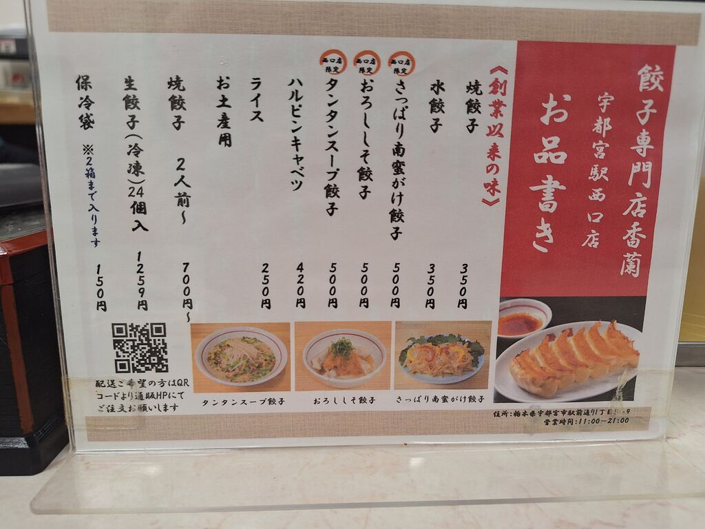 世代を超えて愛されている香蘭の餃子を、駅チカで気軽に楽しんでいただけるお店です。タンタンスープ餃子など宇都宮駅西口店限定のアレンジメニューもございますのでぜひお試しください。