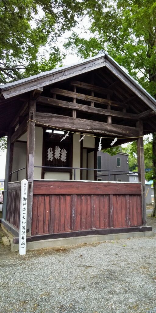 境内に由来が書かれておりますがソレとは別に平将門伝説もある神社です。将門が討ち取られたときに三本足の大きな鶏が飛んできて将門の亡きがらをつかみ飛び立ち空中で五体をバラバラにしたのでアチコチに体の一部が飛び散りました。その時に将門の首が「バラバラになった体よ、集まってきてマタ戦をしようぞ」と言った話があります。その時落ちて来た腹を祀ったのが大原神社と言われております。腹部の病気や安産に霊験があらたかなのでまんざらでもない伝説です。神楽殿では1875年に整備された御神楽(足利市文化財)が4月・10月の第3日曜日の例大祭で奉納されます。日本神話を題材にとったものだそうで1度見てみたいと思いました。 (訪問:2023/06/18)