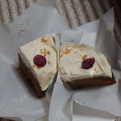 nyata-mamaさんと、コーちゃんさんの口コミを拝見してとても気になり行って来ました!木製の可愛らしい外観で、中に入ると右手が焼き菓子等コーナーの棚、左手はショーケースに入ったスイーツとお惣菜が並んでいました!大好きな『キャロットケーキ』とキャラメルとくるみのタルトの『エンガディナー』を購入しました!キャロットケーキは、スポンジがしっとりと柔らかくスパイシーな香りが良くアクセントとなりとても美味しかったです。また、エンガディナーは、サクサクした生地がキャラメルと良く合って凄く美味しかったです!スイーツは他にチョコのテリーヌやチャイクリームプリンも有りました。お惣菜はラザニアといぶりがっこ入りのポテトサラダ、豚ひき肉とバジルのタイ風炒め等が有ります。お弁当もあり、この日はは『ボローニャ風手打ちラザニア』『豚挽き肉のバジルのタイ風炒めごはん』『牛挽き肉のインディアンタコライス』等で、自家製スモークチキンもテイクアウト出来るみたいです!すぐに召し上がりたい方はテラス席も有り、イートイン出来ます!色々頂いてみたいので、また近いうちに伺いたいです! (訪問:2021/11/11)