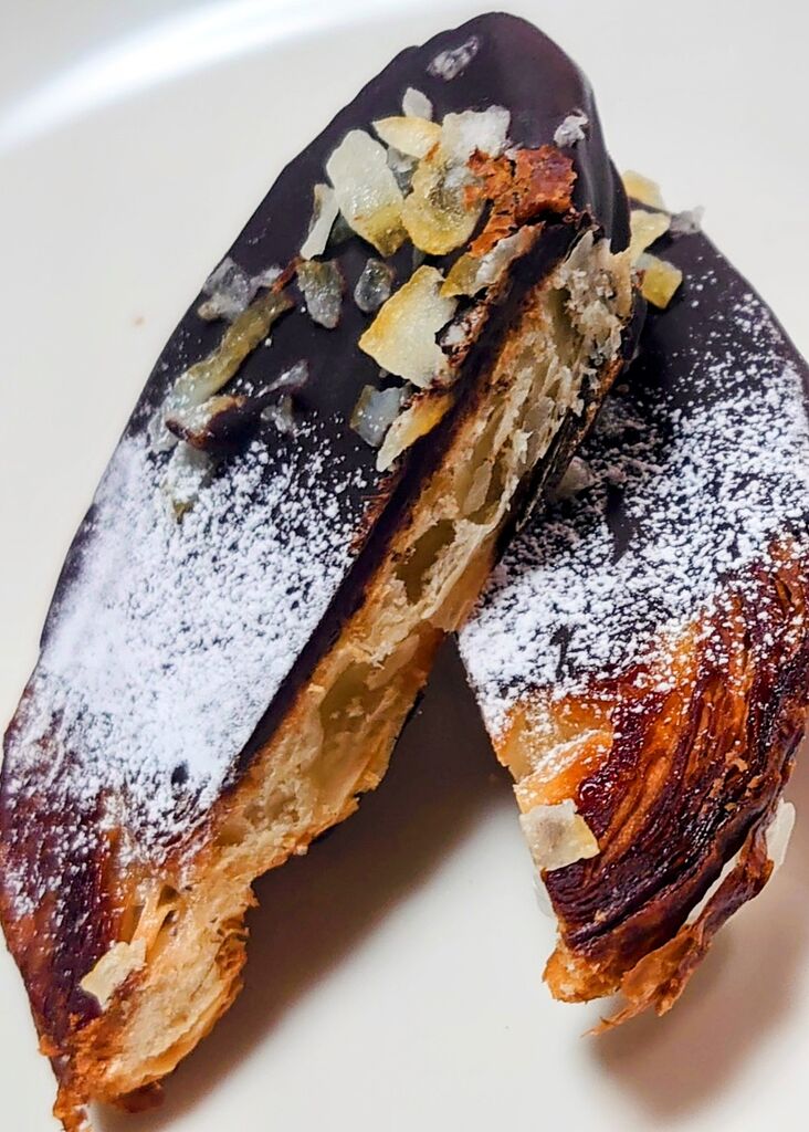 前回購入出来なかったので、今回はお取り置きの連絡をしてから訪問しました。パルミエショコラを購入です。今回のトッピングはクランベリーとアーモンドでした。サクサクの生地に洋酒の風味が良いチョコがコーティングされていて大人な感じの甘いパンと言う感じですね。お店の方の感じも良くまた訪問したいお店です。 (訪問:2025/10/22)