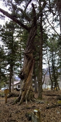 平家の里の向かい側にある公園です。駐車場に止め先ず初めに目に飛び込むのが平清盛公ノ木(樹齢800年 伝承)です。樹高30m、幹周4.95mの大栗の御神木はダイナミックなフォームをしていて公園内で凄みを利かしており貫禄を感じました。平重盛公ノ木(樹齢800年 伝承)は樹高25m、幹回り4.10mと幾分控えめな大きさですが大栗であることは間違い御座いません。こちらの御神木は清盛公ノ木と趣が違ってドリルのような鋭い回転をしているように感じました。清盛公の嫡男だけあり大将らしい姿をまざまざと見せつけてくれました。園内には数多くのモミジがあり湯西川の紅葉の名所だそうです。その時期に再訪したいと思いました。 (訪問:2021/12/17)