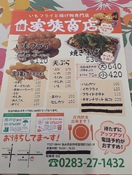 いもフライは北海道の男爵じゃがいも、国産小麦と油にこだわり丁寧に揚げ、地元佐野のフルーツソースを使用。カラッとした衣にジュワっとソースが浸み込んでホクホクじゃがいもと絶妙なハーモニー♪焼きそば、串揚げ各種あり。イートインスペースもご自由に。