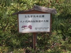 その昔、八幡太郎義家が奥州征伐のためこの辰街道を通り、人馬を休めた際に桜の鞭を挿したものが根付いて成長したという言い伝えがあり、「義家桜」として親しまれています。また、この木の根元には馬頭観音が安置され「桜観音」と呼ばれています。