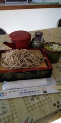 敷地内には「とちぎのふるさと田園風景百選」の標柱が立っておりました。センター内に入るとチョットした直売所となっております。仙波産の農産物が100円~販売しておりました。この地域では色んな物を作られているんですね。立派な無農薬ダイコン(100円)が目に留まりました。農村わくわくスマホラリーのポスターのQRコードを読み取りスタンプをゲットしました。もりそば500円を券売機で購入し注文しました。そばが出来るまで待っていると年越しそばを注文する何人ものお客さんを見かけました。人気ですね。また次回お食事をすると50円キャシュバックの券を頂きました(1ヶ月有効)。仙波産の新ソバは風味と甘みが感じられ味わい深いです。口切り入っていてサービスが良い蕎麦汁は辛めで出汁も効いております。美味しいソバを堪能することが出来ました。 (訪問:2021/12/04)
