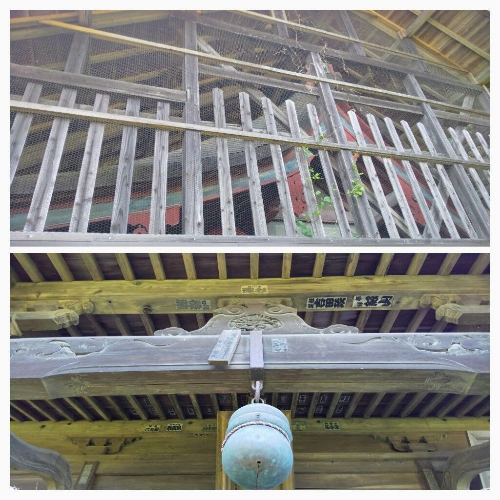 旧村社の神社で少し離れた場所にある粟野のかや(栃木県天然記念物、とちぎ名木100選)を所有しております。境内の御神木のスギが高々と伸長している手前にイチョウの木が2本そして鳥居を潜って右側に年数の経たイチョウと計3本あります。黄葉時期には境内が黄色一色で包まれ見事な景観になることでしょうね。秋に再訪したいと思います。拝殿の向拝は鈴を含めグリーンのカラーとなっており周囲の景色と一体化しておりました。本殿は打って変わって朱色を主体としておりメリハリが感じられました。2年に一度の口粟野神社秋季例大祭(口粟野町内にある7台の彫刻屋台が繰り出す)が10月の2日間に開催されるそうで今年がその年に当たります。熱気溢れるお祭りを間近で見てみたいと思いました。 (訪問:2021/08/06)