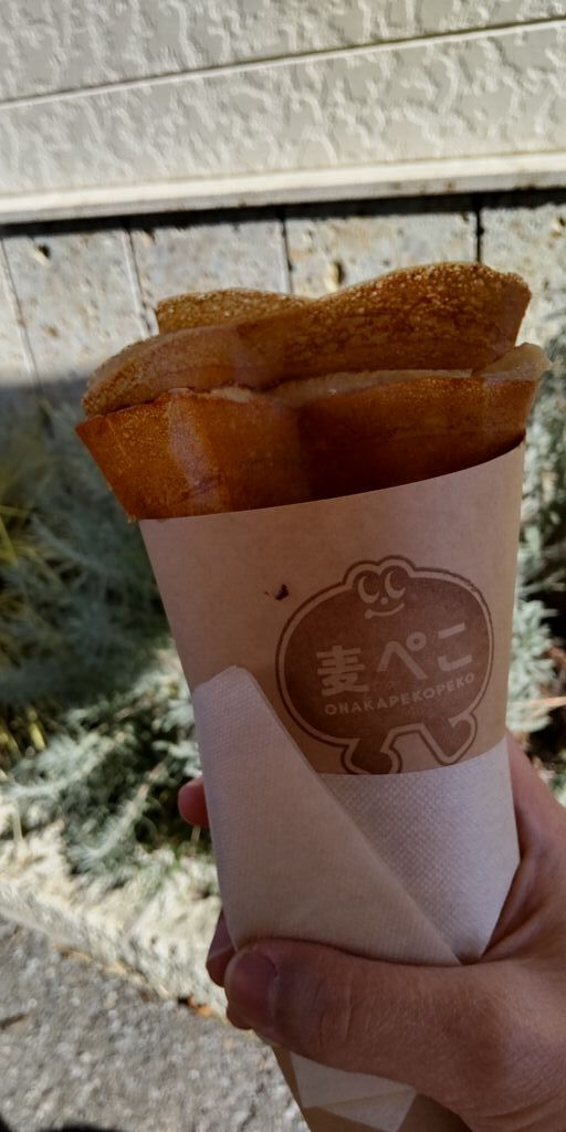 麦ぺこさんの土日限定クレープをいただきました♪クレープのオーダー用紙に自分が食べたいクレープの詳細を記入します。私はモチモチ生地のオレンジカルダモンクレープを頼みました。夫はパリパリ生地のシュガーバターです♪出来上がったら外の椅子でいただきます(* ´ ▽ ` *)クレープもちもちで美味しい~!オレンジカルダモンは今だけのお味のようです♪パリパリのクレープも一口貰いました。違いがあって最高!食べたい気分で今日はどっちの生地にしようかなぁと出来ますね♪また近いうちに伺いたいと思います。ごちそうさまでしたぁー! (訪問:2025/12/03)