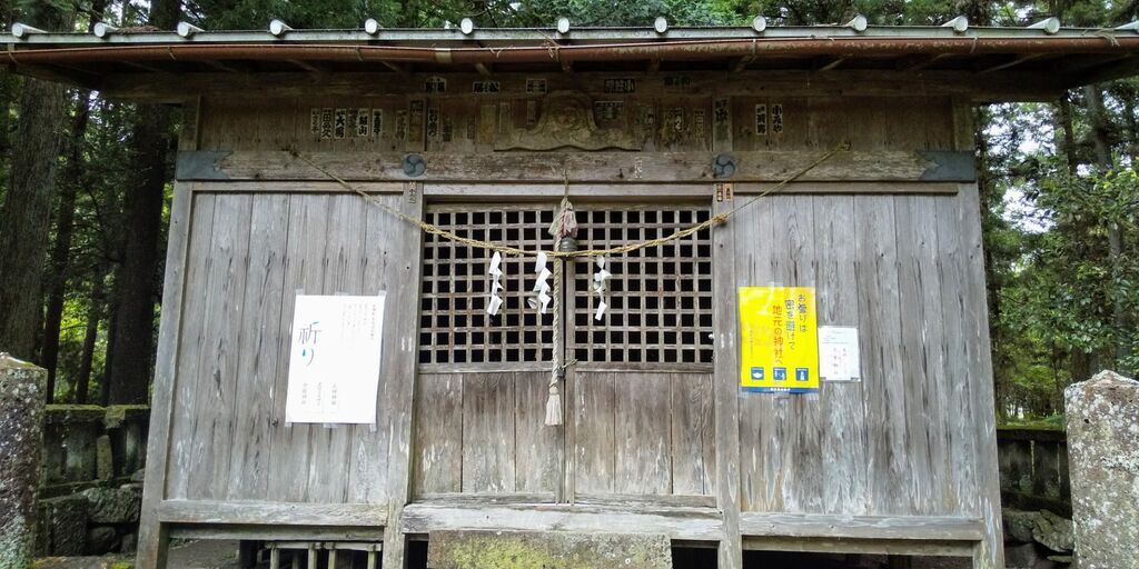 | 主祭神・氏子 | 【主祭神】天御中主命(あめのみなかぬしのみこと)・磐裂命(いわさくのみこと)・根裂命(ねさくのみこと) 【氏子】31戸 |