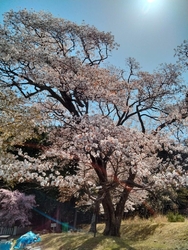サーフさんお勧めのサクラを見ました。樹齢約300年、樹高約23m、幹周3.5mの古木のヤマザクラは見頃を迎えておりました。周囲のサクラと共に雷電神社にお披露目をしているようです。サクラは幹が低い所から2本の主枝に分かれておりますがソノ幹にはクビレがありシェイプアップしている形跡が見られました。歳を重ねても日々怠らない姿が美しいサクラです。 (訪問:2023/04/02)