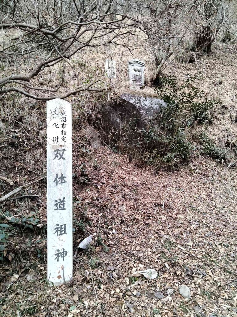 県道15号線を西に進むと発光路の森の看板があり道路を挟んだコンクリートの土留めの上の大きなモミの木が目印です。モミの木の少し西の階段を上がりモミの木を通過し東に進むと道祖神(鹿沼市文化財)が祀られておりました。年代が明確な物としては県内最古の1764年制作、高さ63cm、握手形であります。雨ざらしなので風化は避けられませんが姿形もハッキリとしていて刻まれた年号も読むことが出来ます。男女2神が正面を向きながらガッシリと握手をしていて固い絆が感じられる神様です。 (訪問:2023/02/01)