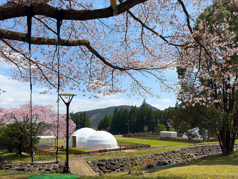 | 【グランピングご宿泊】 滝や小川の大自然で春夏秋冬四季の色を満喫!これから桜の季節【お花見プラン】ご予約受付中!ドッグラン付きテントの周りも桜いっぱい!ゴールデンウィークもご予約まだ間に合います! |